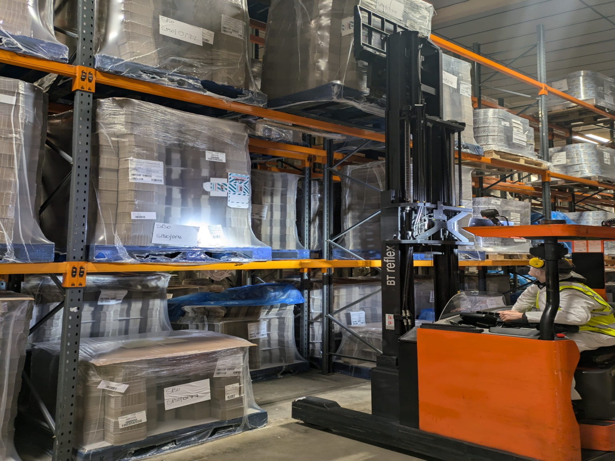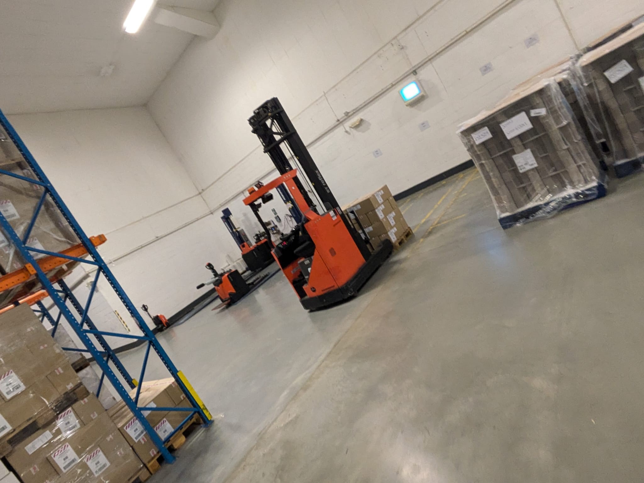 A reach truck is a type of forklift, typically used in warehouses, known for its ability to extend its forks forward and lift loads to high racking systems. They are designed for narrow aisles and high-density storage, offering excellent maneuverability and height capacities.